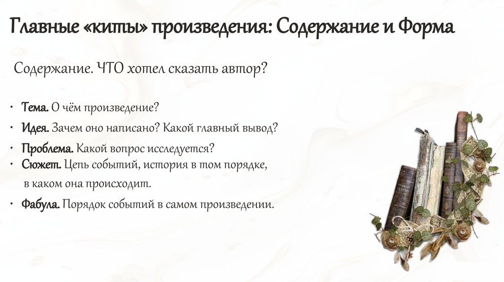 Главные «киты» произведения: Содержание и ФормаСодержание. ЧТО хотел сказать автор?