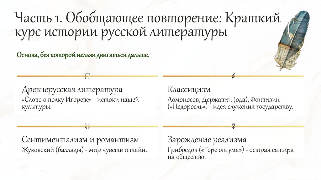 Часть 1. Обобщающее повторение: Краткийкурс истории русской литературы