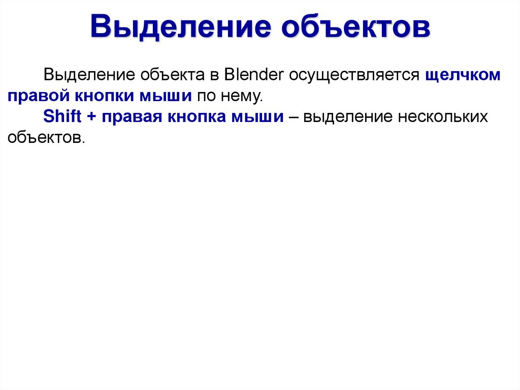 Выделение объектовВыделение объекта в Blender осуществляется щелчком