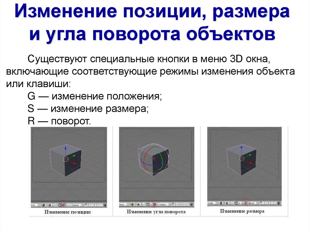 Изменение позиции, размераи угла поворота объектов
