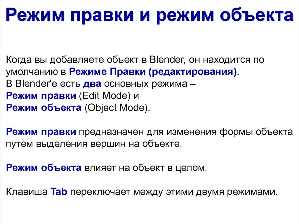 Режим правки и режим объектаКогда вы добавляете объект в Blender, он находится по
