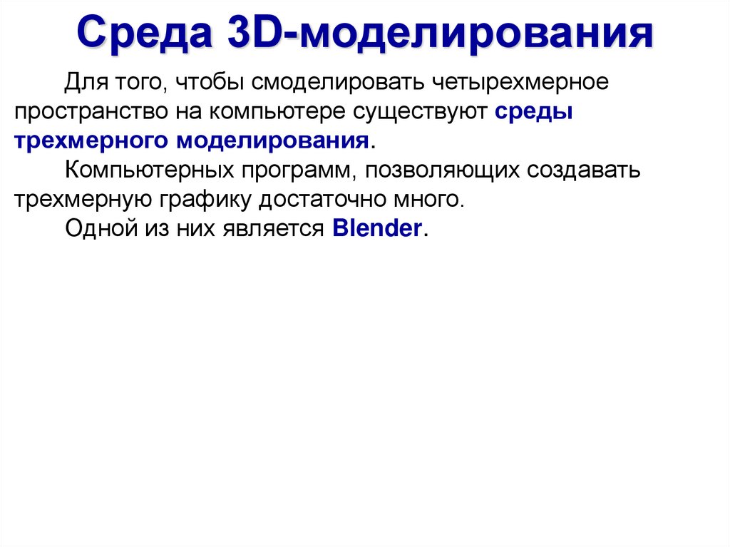 Среда 3D-моделированияДля того, чтобы смоделировать четырехмерное