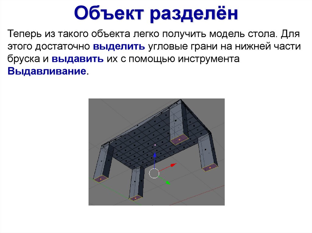 Объект разделёнТеперь из такого объекта легко получить модель стола. Для