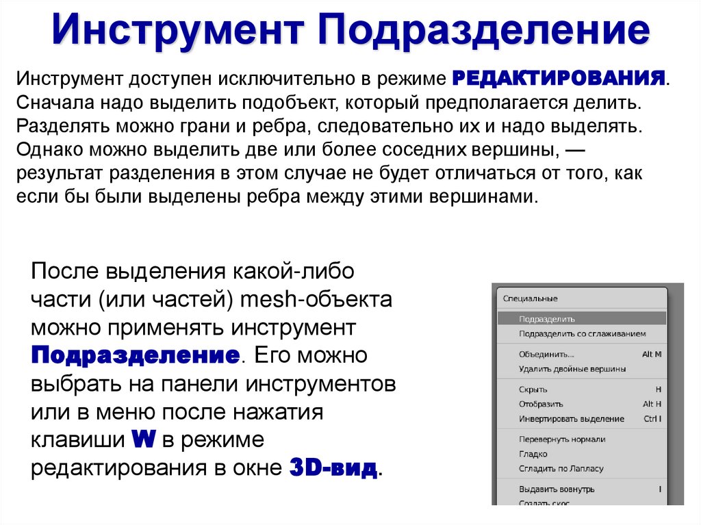 Разделять можно грани и ребра, следовательно их и надо выделять.
