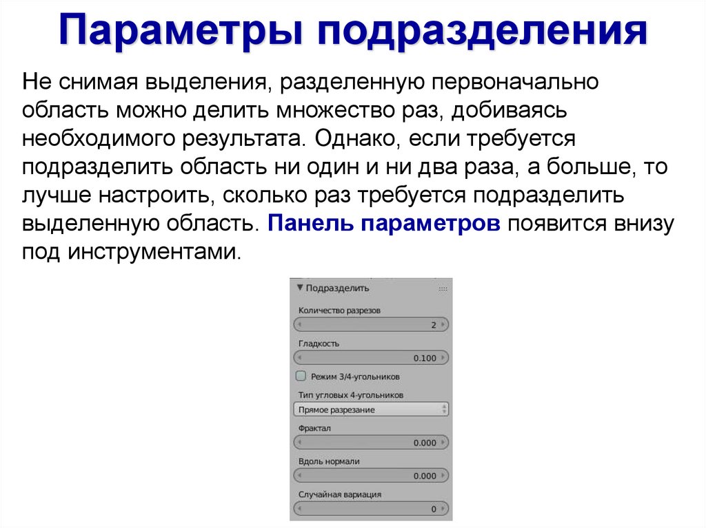 лучше настроить, сколько раз требуется подразделить