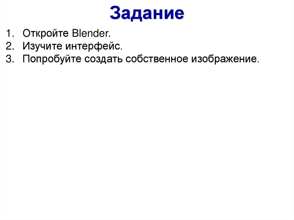 Задание1. Откройте Blender.