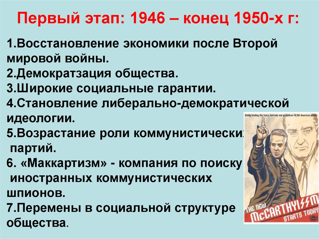 Первый этап: 1946 – конец 1950-х г:1.Восстановление экономики после Второй