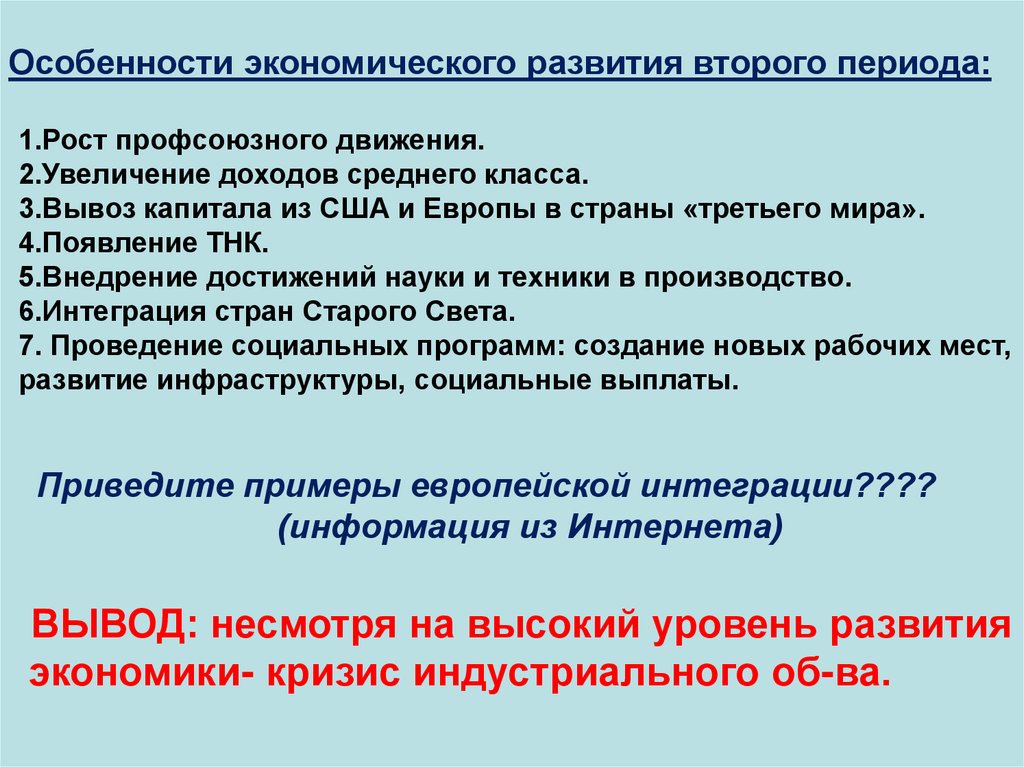 Особенности экономического развития второго периода:1.Рост профсоюзного движения.