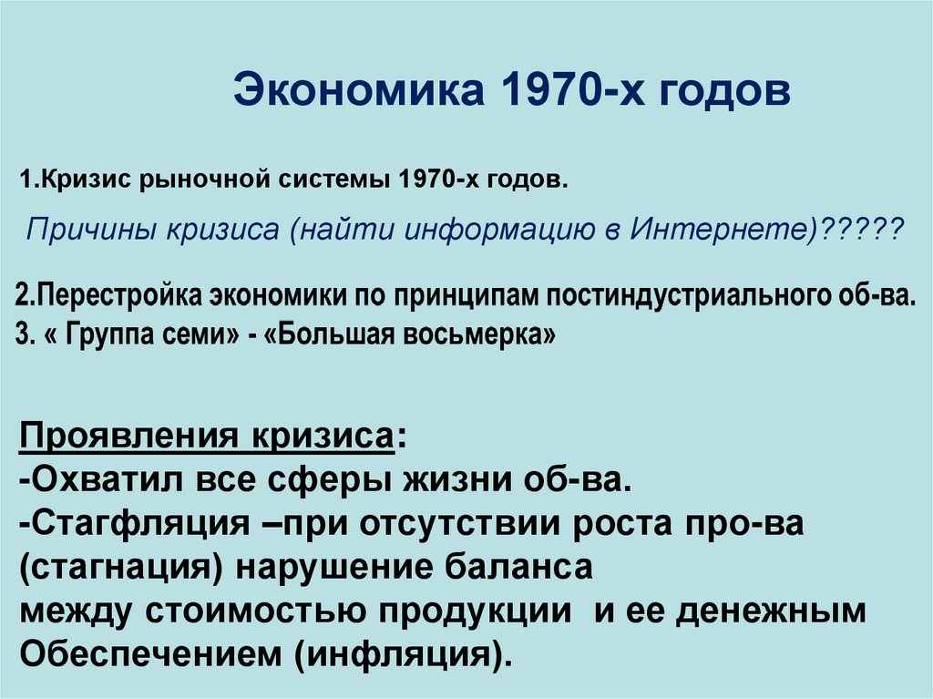 Экономика 1970-х годов1.Кризис рыночной системы 1970-х годов.