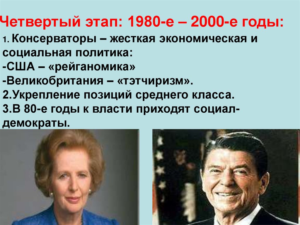 Четвертый этап: 1980-е – 2000-е годы:1. Консерваторы – жесткая экономическая и