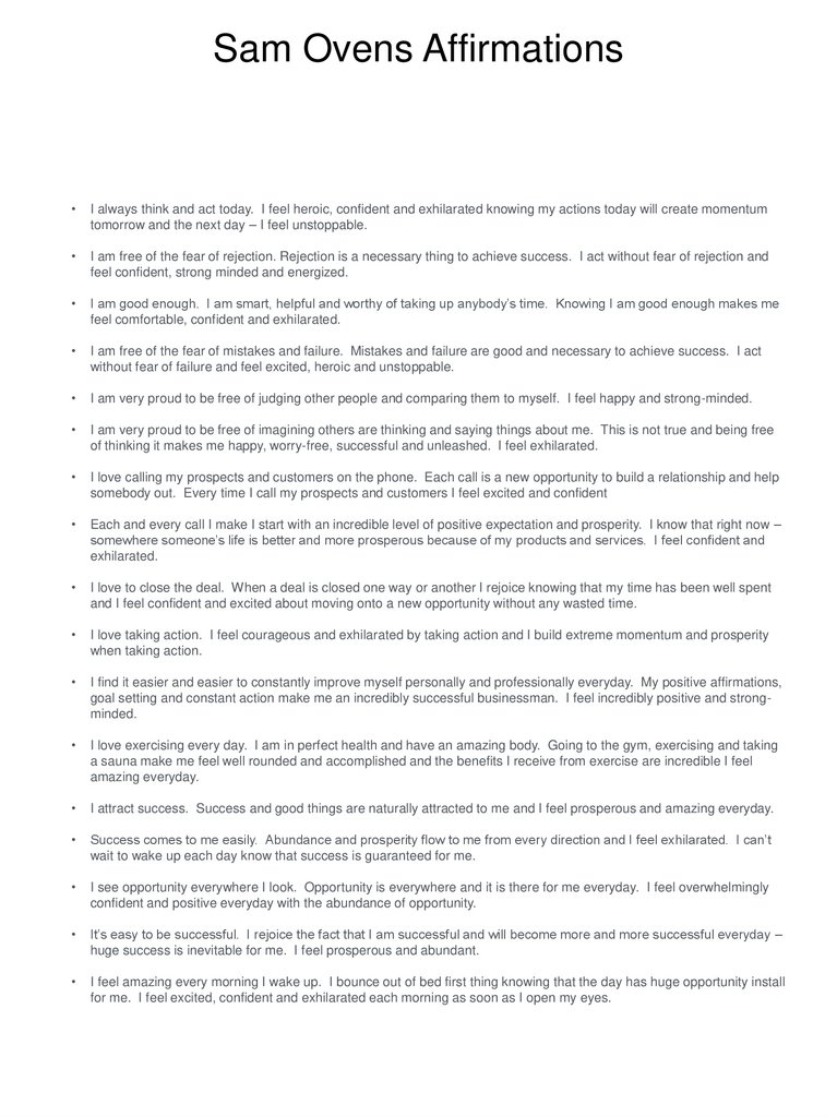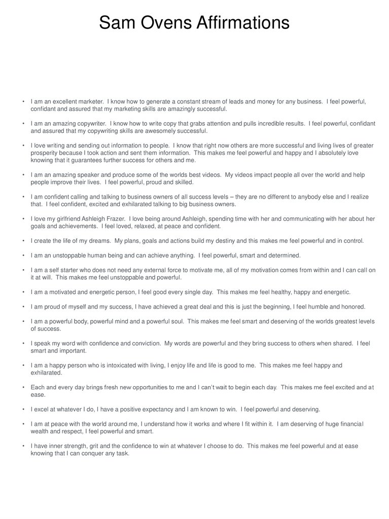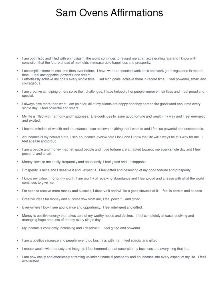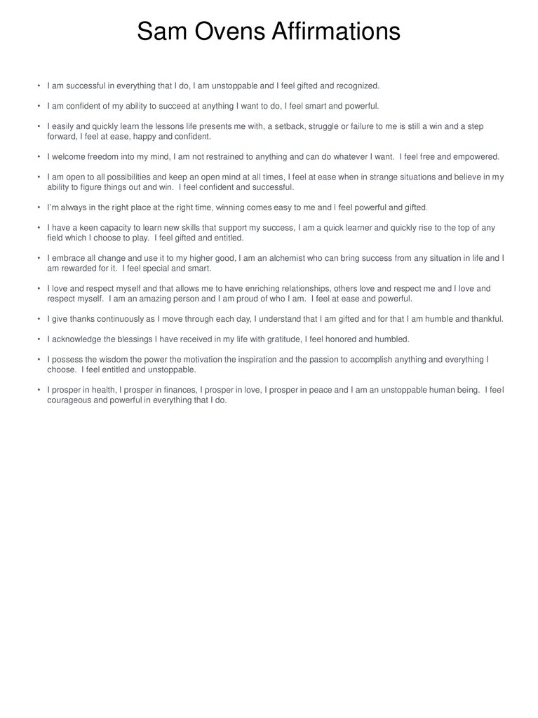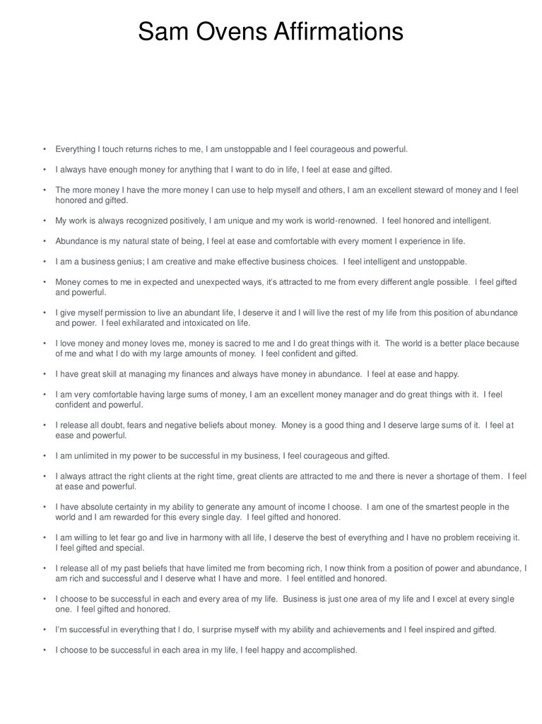 Sam Ovens Affirmations• I am successful in everything that I do, I am unstoppable and I feel gifted and recognized.
