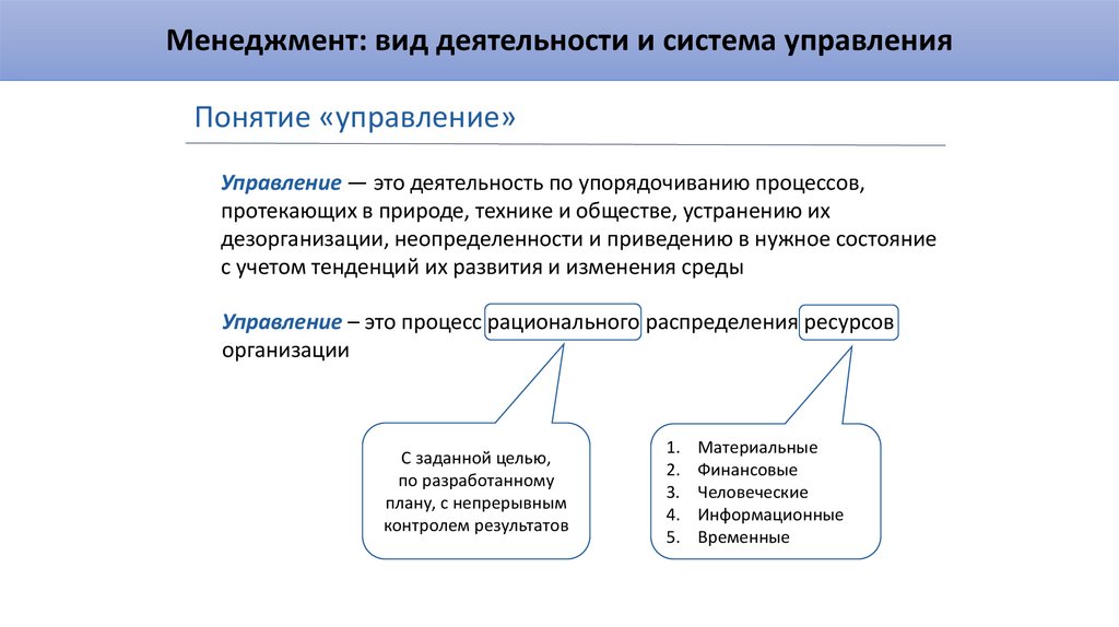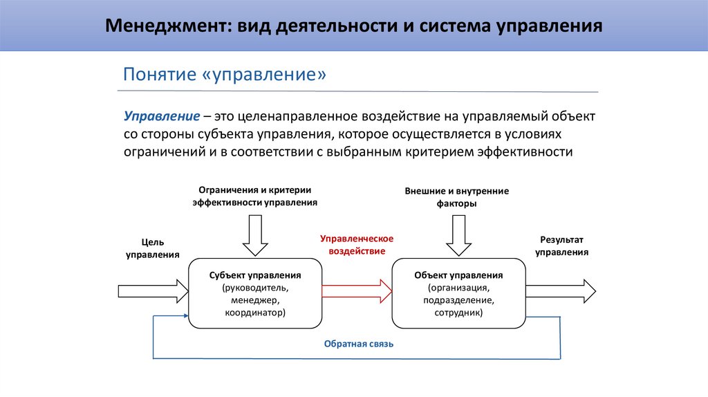 Менеджмент: вид деятельности и система управленияПонятие «управление»