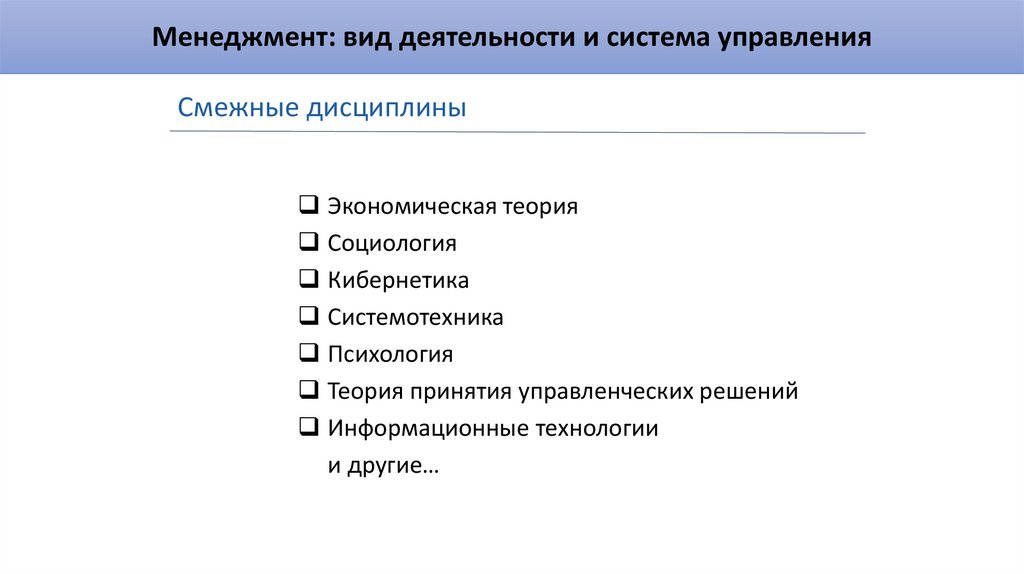Менеджмент: вид деятельности и система управленияСмежные дисциплины