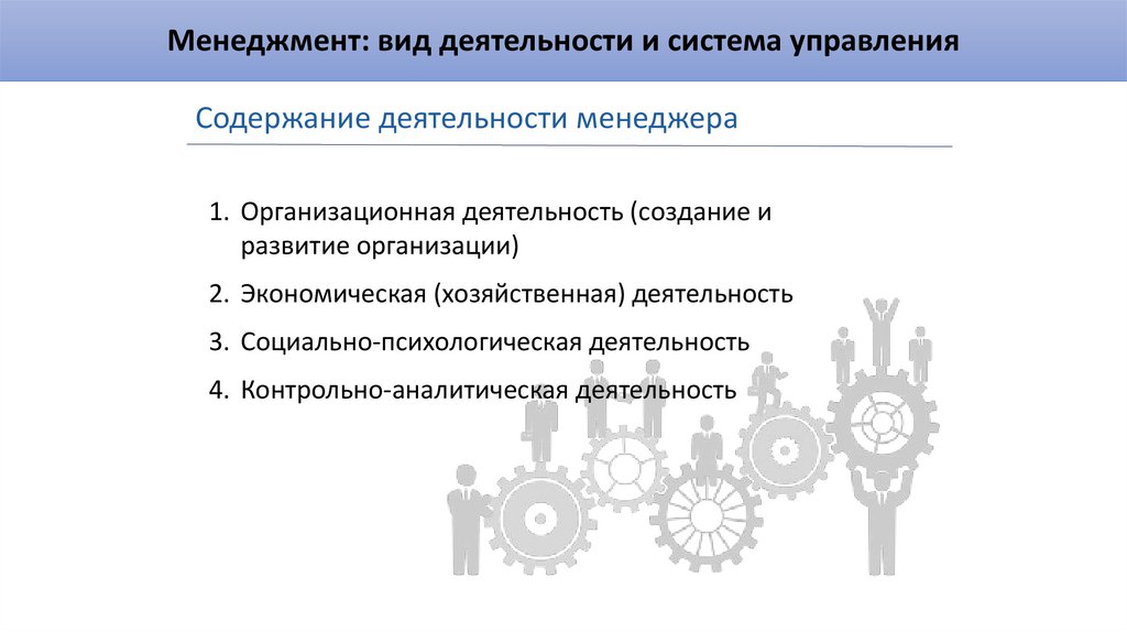 Менеджмент: вид деятельности и система управленияСодержание деятельности менеджера