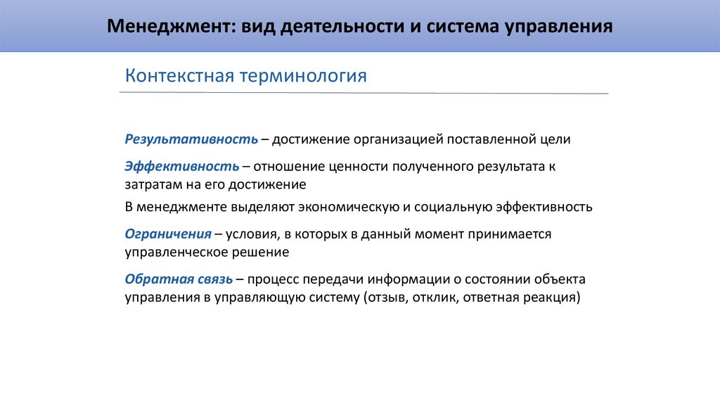 Менеджмент: вид деятельности и система управленияКонтекстная терминология