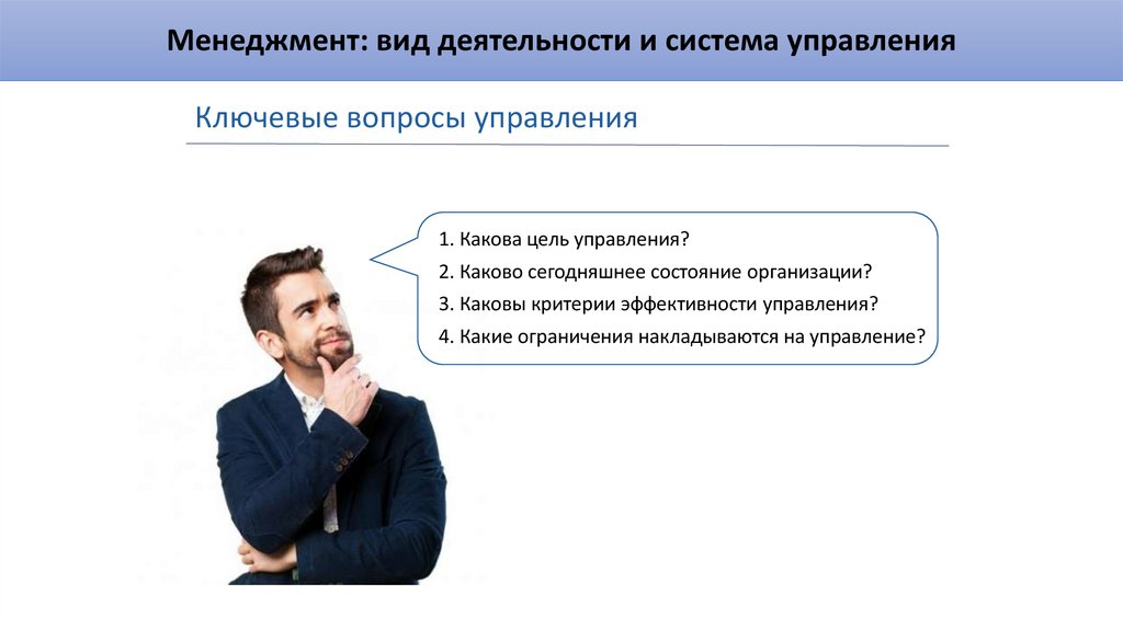 Менеджмент: вид деятельности и система управленияКлючевые вопросы управления