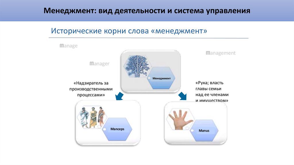 Менеджмент: вид деятельности и система управленияИсторические корни слова «менеджмент»