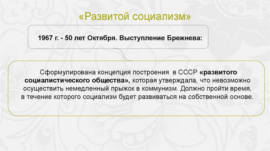 Политика БрежневаПоявились концепция «развитого социализма»