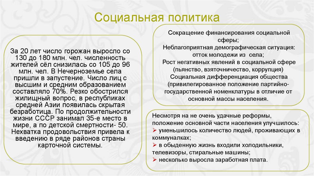 Основные тенденцииразвития СССР к 1980-м гг.