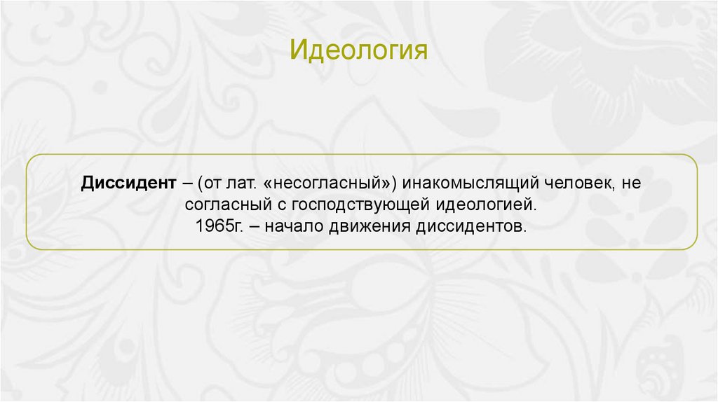 ИдеологияДиссидент – (от лат. «несогласный») инакомыслящий человек, не
