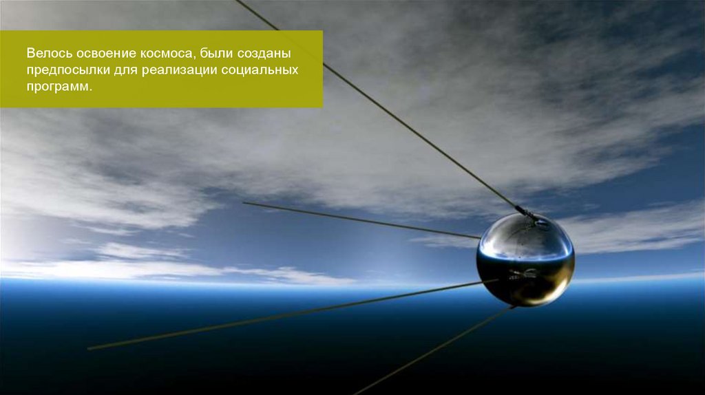 Велось освоение космоса, были созданыпредпосылки для реализации социальных