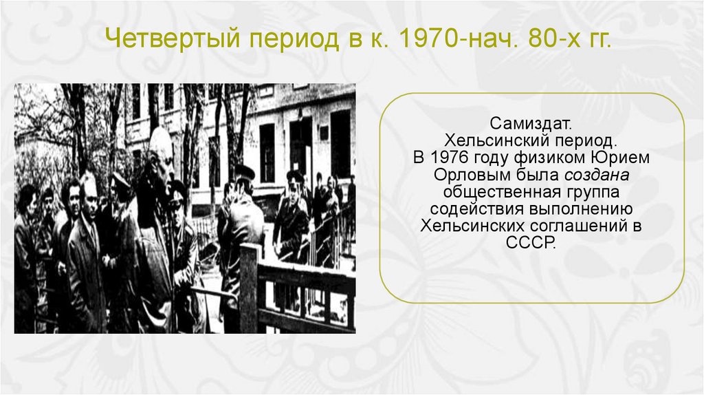 Четвертый период в к. 1970-нач. 80-х гг.Самиздат.