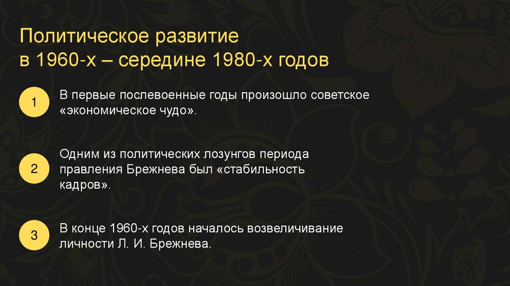 Политическое развитиев 1960-х – середине 1980-х годов