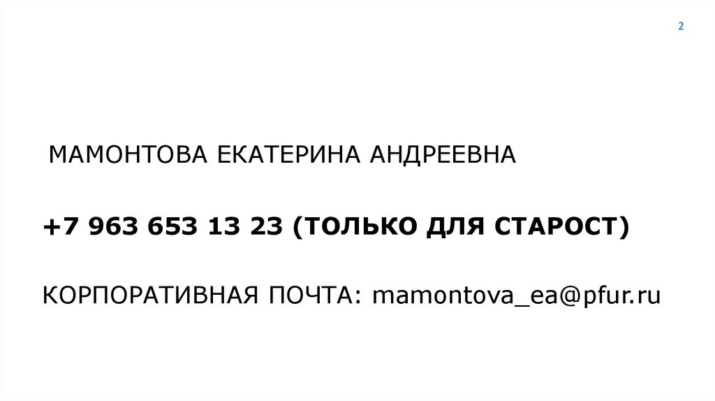 КОРПОРАТИВНАЯ ПОЧТА: mamontova_ea@pfur.ru