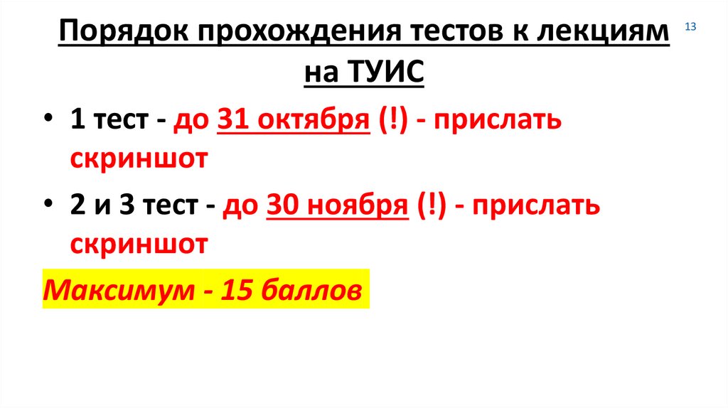• 1 тест - до 31 октября (!) - прислать