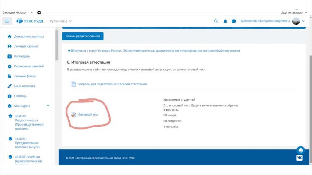 Итоговая аттестацияТест в ТУИС