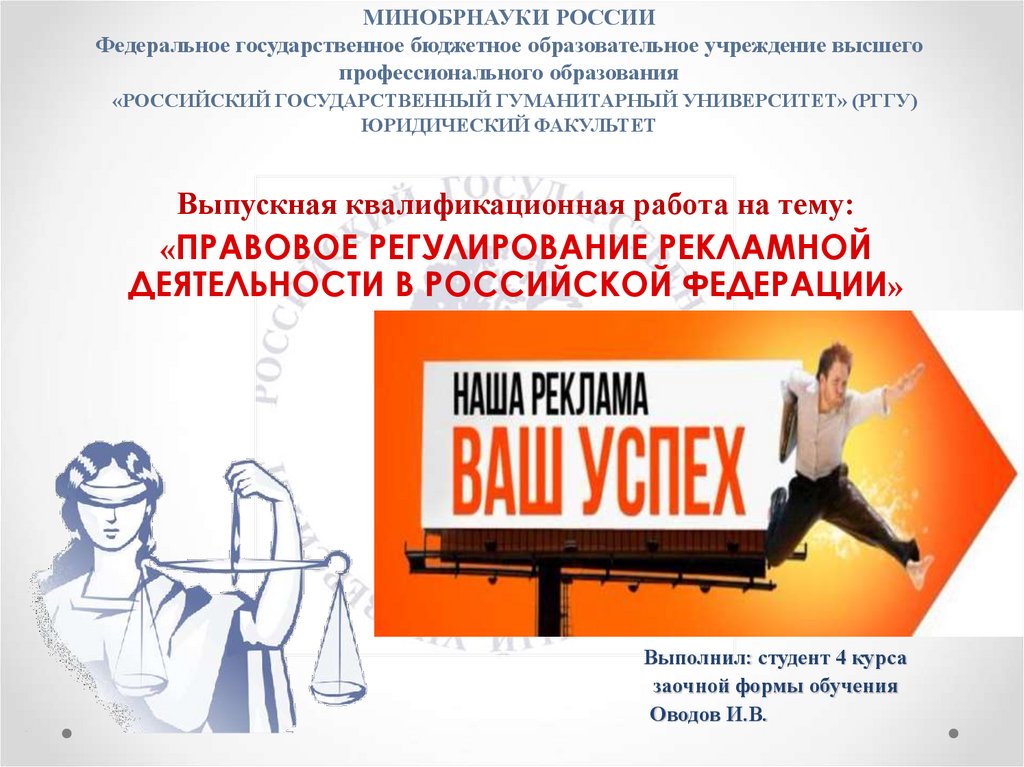 Правовое регулирование рекламной деятельности в Российской Федерации