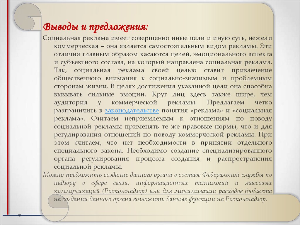 Выводы и предложения:Социальная реклама имеет совершенно иные цели и иную суть, нежели