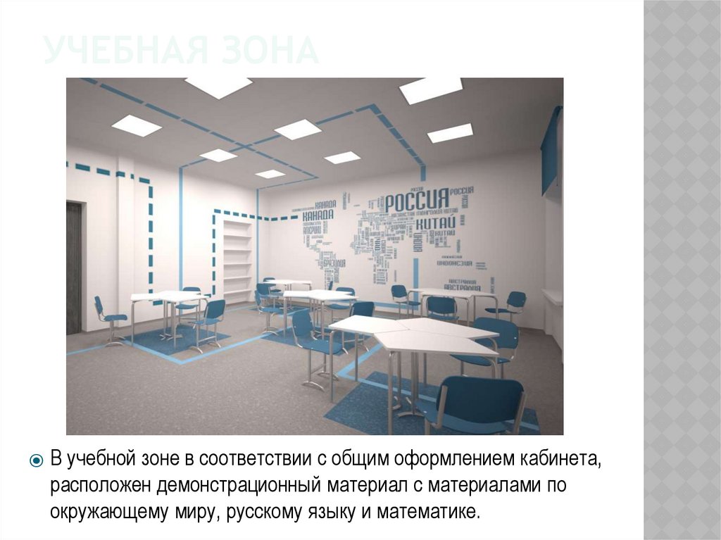 УЧЕБНАЯ ЗОНА⦿ В учебной зоне в соответствии с общим оформлением кабинета,