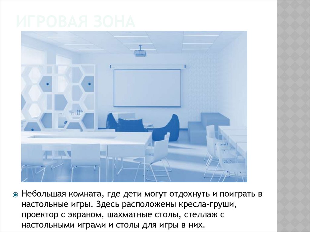 настольные игры. Здесь расположены кресла-груши,