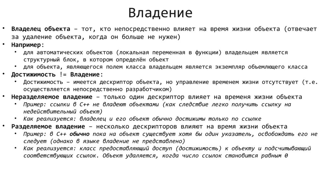локальных объектов (расположенных в теле функций и методов). Время жизни объектов