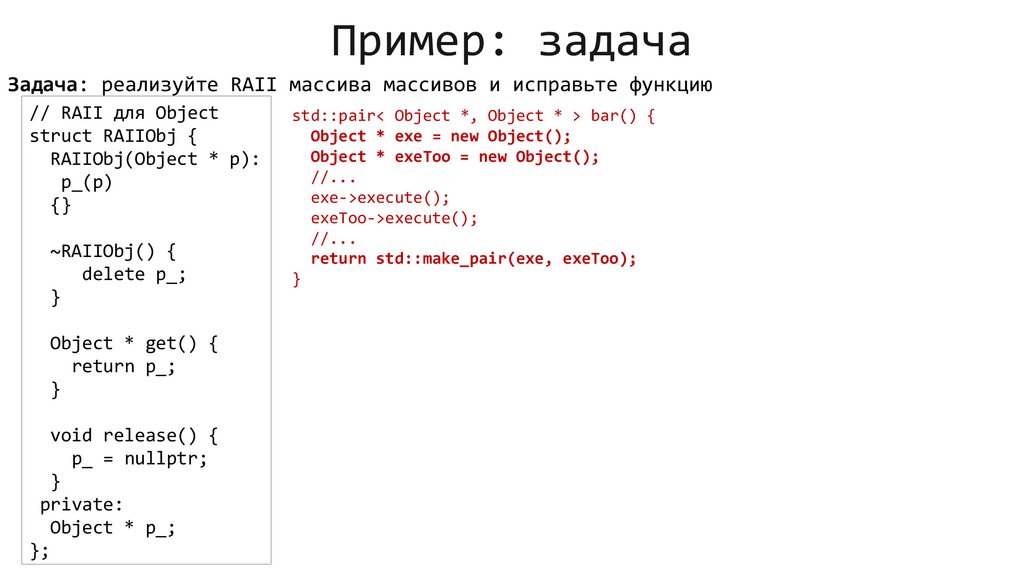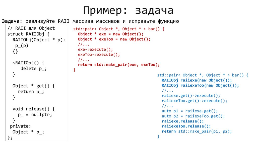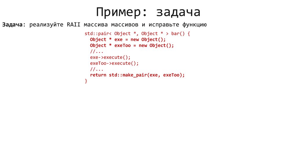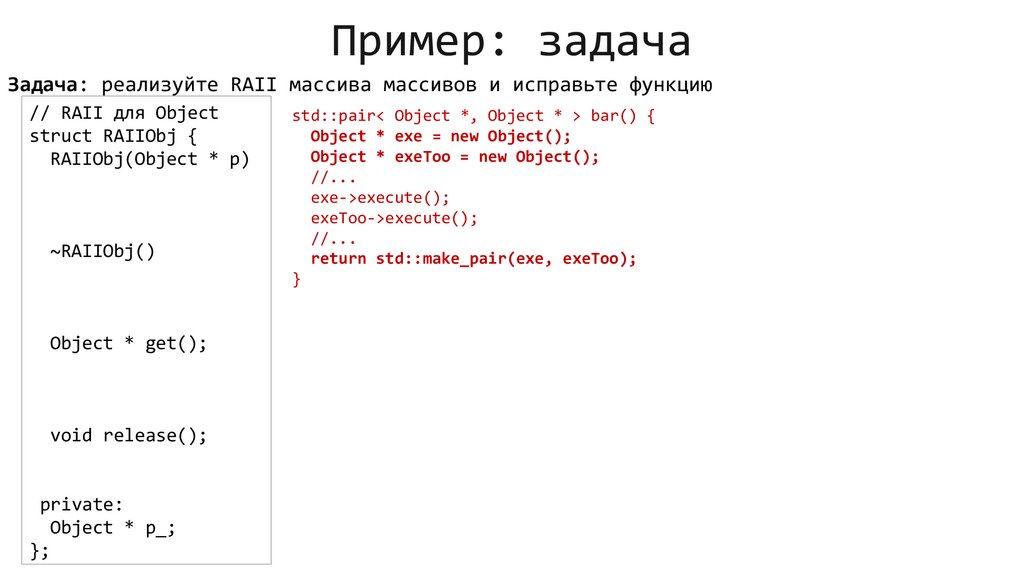 Пример: задачаЗадача: реализуйте RAII массива массивов и исправьте функцию