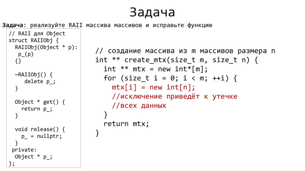 ЗадачаЗадача: реализуйте RAII массива массивов и исправьте функцию