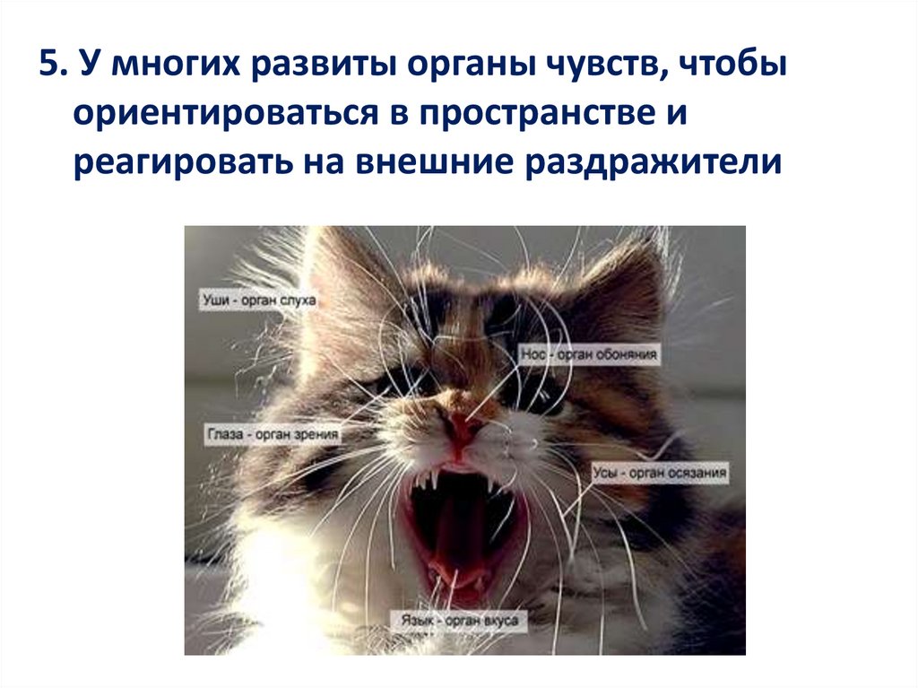5. У многих развиты органы чувств, чтобыориентироваться в пространстве и