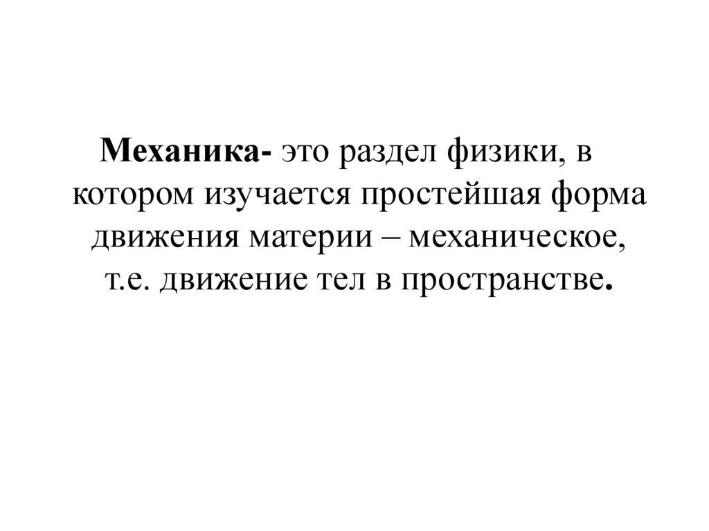 Механика- это раздел физики, вкотором изучается простейшая форма