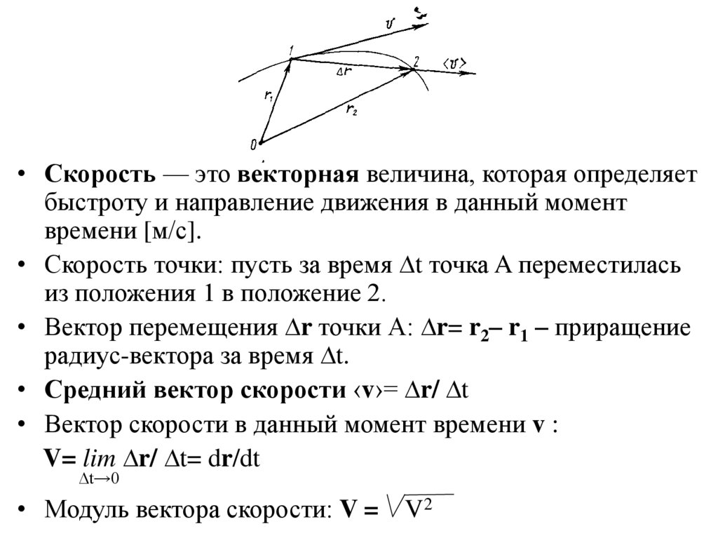 • Скорость — это векторная величина, которая определяетбыстроту и направление движения в данный момент