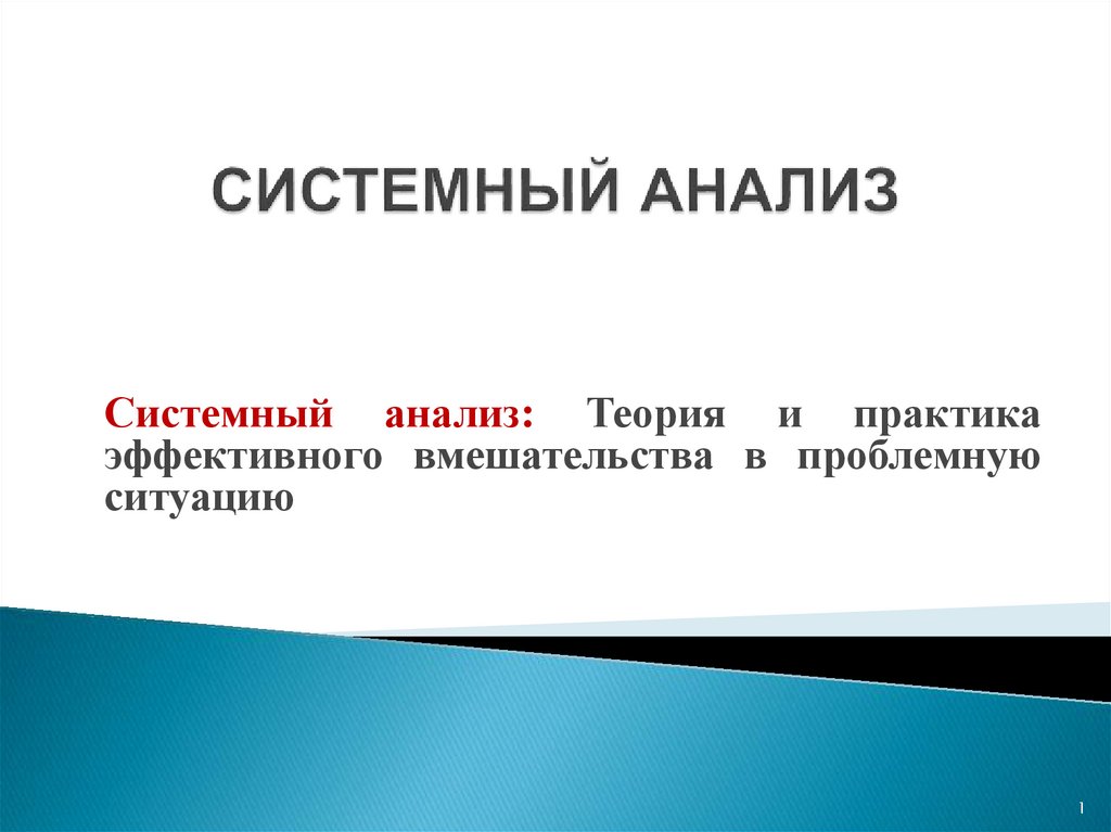 1. СИСТЕМНЫЙ АНАЛИЗ