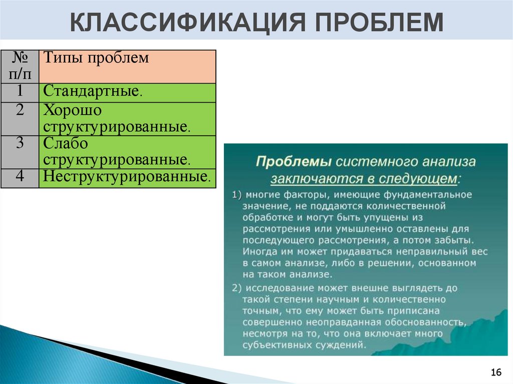КЛАССИФИКАЦИЯ ПРОБЛЕМ№ Типы проблем