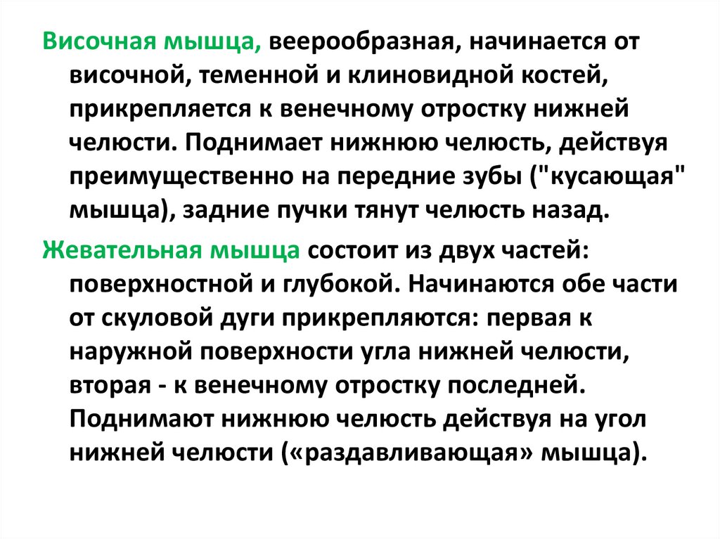 Височная мышца, веерообразная, начинается отвисочной, теменной и клиновидной костей,