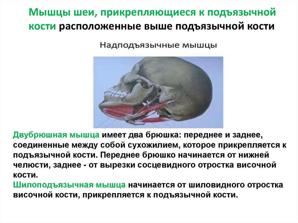 и мышцы, лежащие ниже этой кости подподъязычныеК ним относятся: