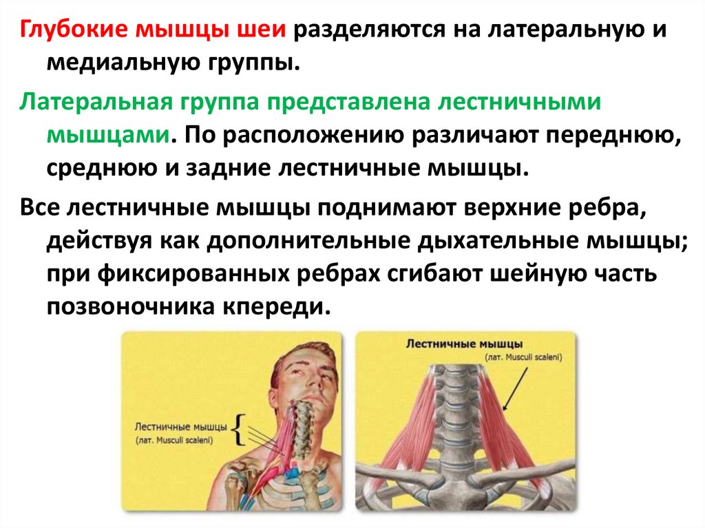 Глубокие мышцы шеи разделяются на латеральную имедиальную группы.