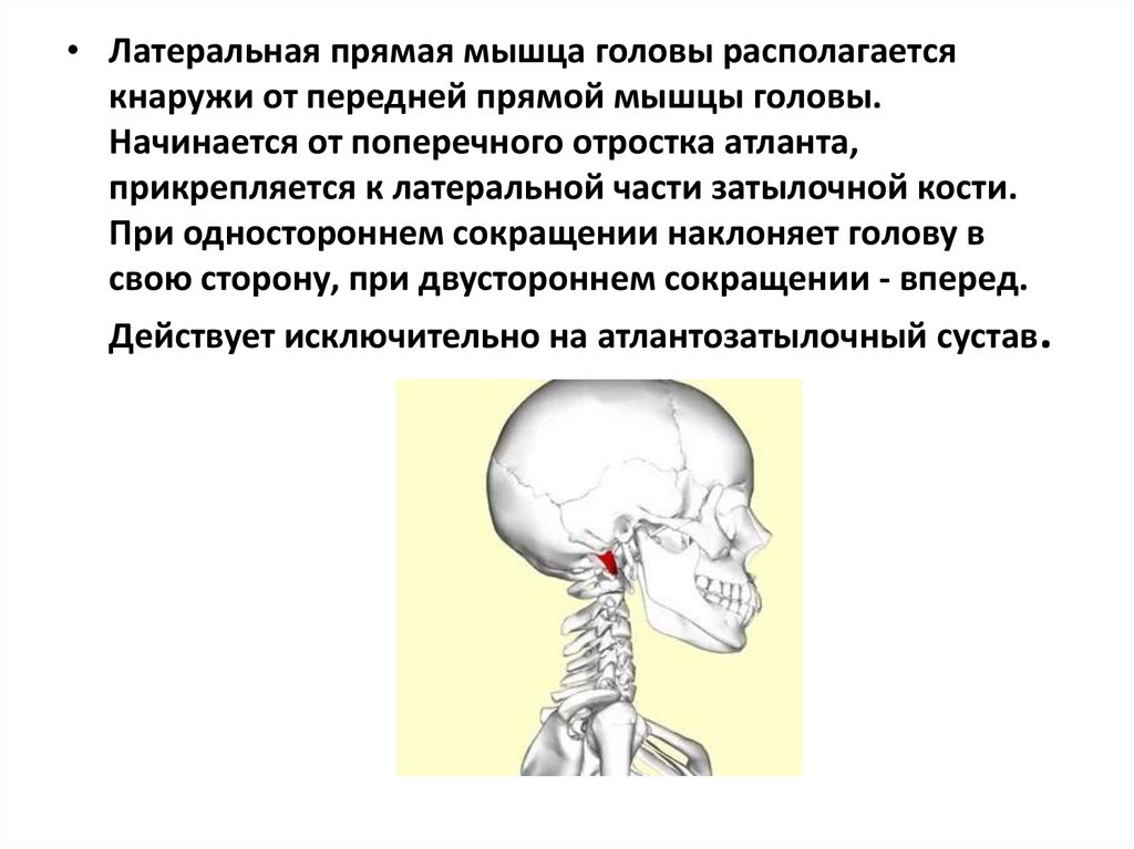 • Латеральная прямая мышца головы располагаетсякнаружи от передней прямой мышцы головы.
