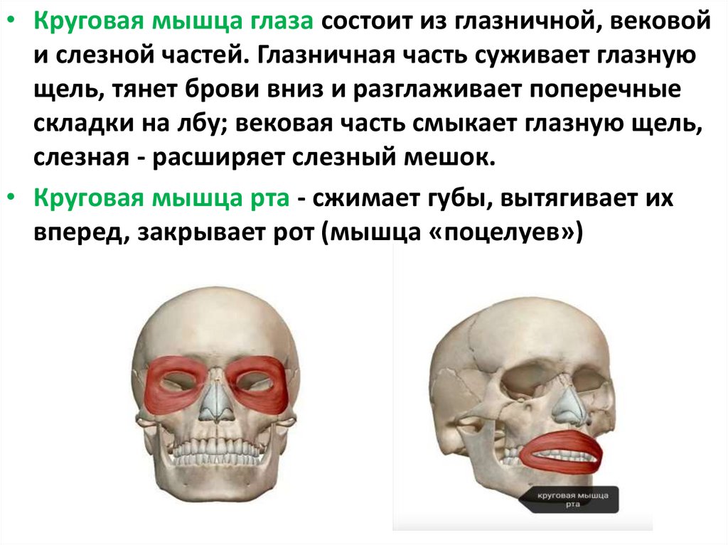 • Круговая мышца рта - сжимает губы, вытягивает их