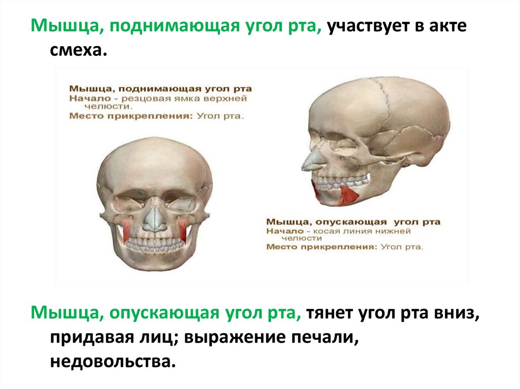 Мышца, опускающая угол рта, тянет угол рта вниз,