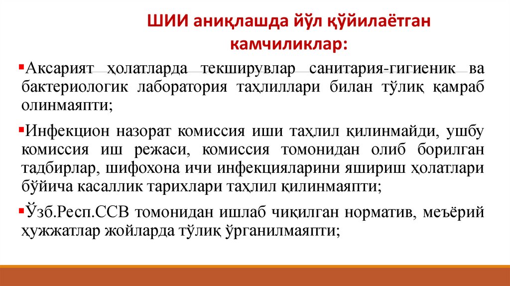 Санитария-гигиена режимининг турли нуқсонлари фонида бундай