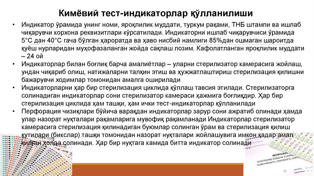 (халат, қалпоқча, ниқоб, резина қўлқоплар, резина фартук ва бошқалар), маркировкаланган